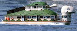 長浜から出るかめ丸は通年運航。2階建ての船で猪苗代唯一の浮き島である翁島巡りが楽しめます。(約35分かかります)
